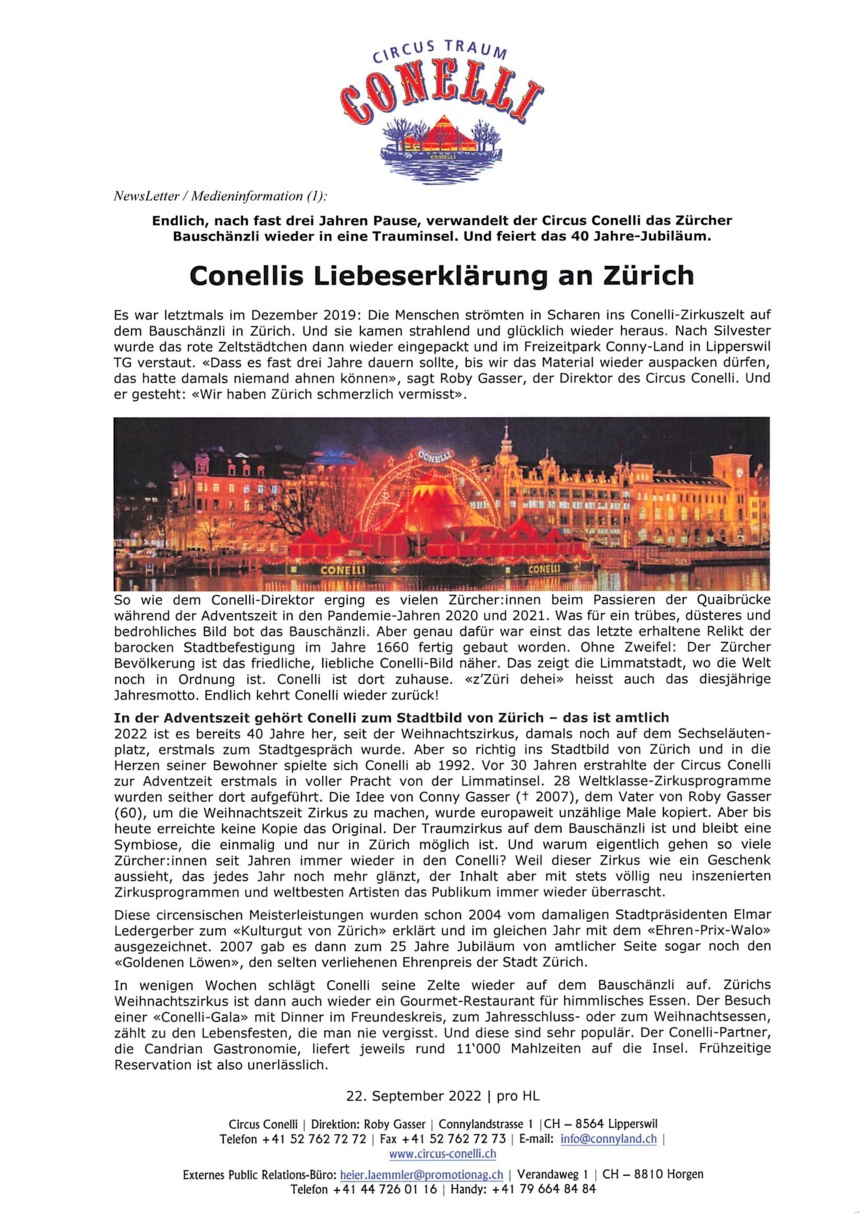 Endlich, nach fast drei Jahren Pause, verwandelt der Circus Conelli das Zürcher Bauschänzli wieder in eine Trauminsel. Und feiert das 40 Jahre-Jubiläum.