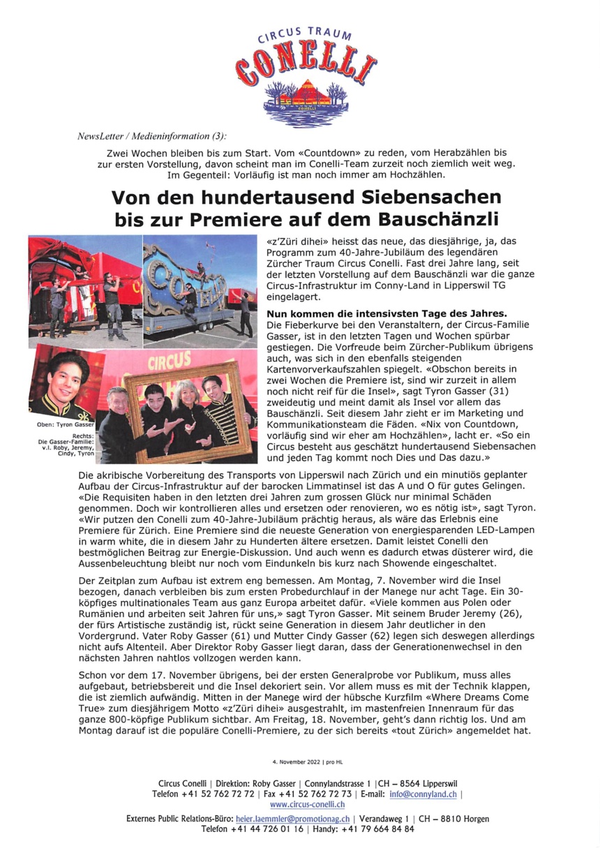 Zwei Wochen bleiben bis zum Start. Vom «Countdown» zu reden, vom Herabzählen bis zur ersten Vorstellung, davon scheint man im Conelli-Team zurzeit noch ziemlich weit weg. Im Gegenteil: Vorläufig ist man noch immer am Hochzählen.